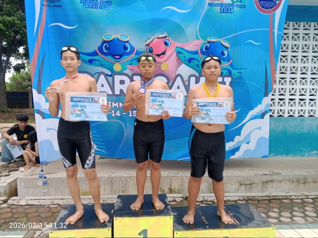 Tajam24Jam.Com Jambi 15/02/2026 – Perlombaan Kejuaraan renang “Fun Swimming” yang di adakan pada tanggal 15 februari di kolam renang Telago Rajo Telah Usai. Perlombaan terbut sudah di nanti tersendiri untuk para atlit muda. Bagi para atlit Ini momen sejauh mana latihan mereka selama ini. Kesempatan ini tak di sia-sia kan oleh Febian (14) dan Aufar (14).