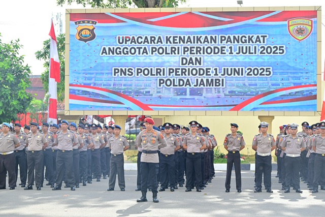Tajam24Jam.Com Jambi, 2 Juli 2025 – Sebanyak 226 personel Polri dan PNS Polri di lingkungan Polda Jambi resmi menerima kenaikan pangkat dalam upacara laporan kenaikan pangkat periode 1 Juli 2025 yang digelar pada Rabu pagi (2/7/2025) di lapangan hitam Mapolda Jambi.