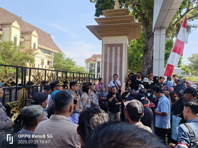 Tajam24Jam.Com Jambi, 21 Juli 2025 – Ratusan massa yang tergabung dalam Aliansi Keadilan Bersama Polri (A.K.B.P) menggelar aksi unjuk rasa di depan Markas Kepolisian Daerah (Mapolda) Jambi, Senin (21/7/2025). Aksi ini menuntut pencopotan AKBP Mat Sanusi, perwira aktif Polri yang diduga melanggar aturan dengan merangkap jabatan di luar institusi kepolisian.