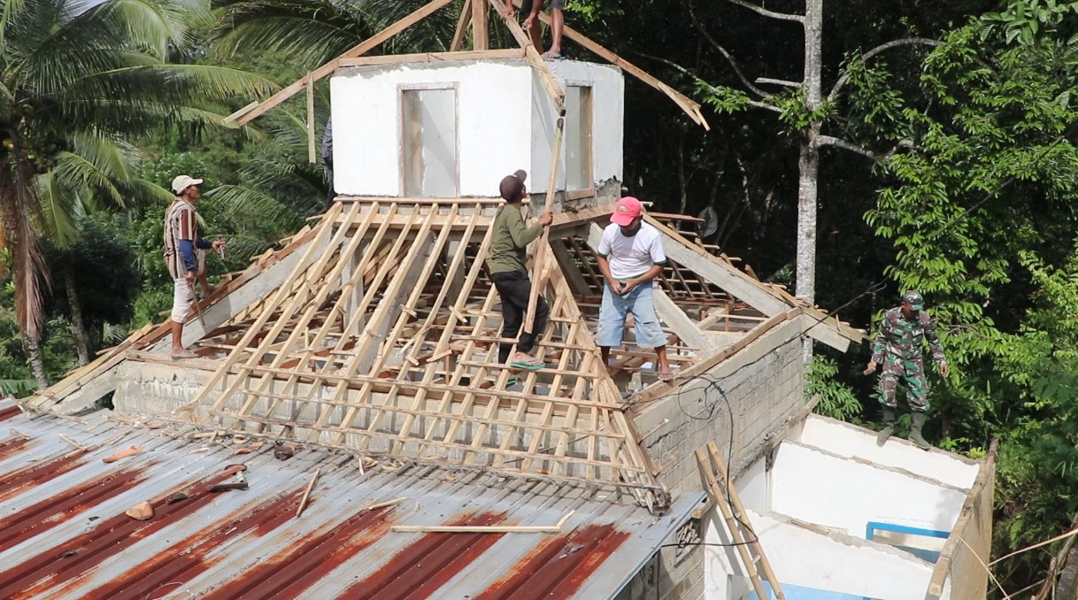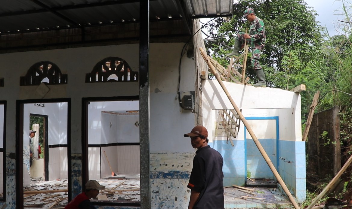 Pagi ini, Sertu Bangkit terlihat aktif di lokasi kegiatan bersama warga desa. Mereka bergotong royong membongkar mushola yang akan direhab, dimulai dengan menurunkan atap bangunan dan membongkar dinding yang sudah tidak layak. Kegiatan ini menjadi wujud nyata kebersamaan dan semangat gotong royong antara TNI dan masyarakat setempat.