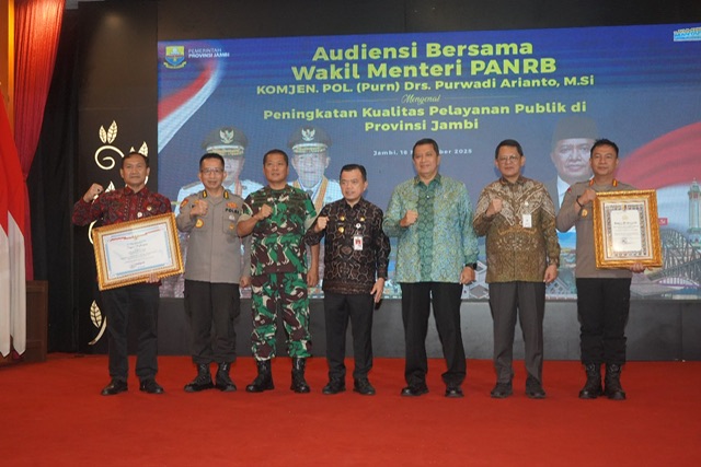 Tajam24Jam.Com Jambi, 18 September 2025 – Komitmen untuk meningkatkan kualitas pelayanan publik di Provinsi Jambi semakin ditegaskan melalui kegiatan audiensi bersama Wakil Menteri Pendayagunaan Aparatur Negara dan Reformasi Birokrasi (PANRB), Komjen Pol (Purn) Purwadi Arianto, M.Si, bertempat di Auditorium Rumah Dinas Gubernur Jambi, Rabu (18/9/2025).