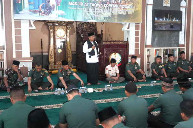 “Hijrah adalah simbol perubahan ke arah yang lebih baik. Saya mengajak seluruh prajurit, PNS dan persit keluarga besar Korem 042/Gapu untuk berani berubah, meninggalkan kebiasaan yang tidak baik, menjaga amanah jabatan dan tugas serta memperkuat ukhuwah antar sesama,” pesan Danrem Brigjen TNI Heri Purwanto.