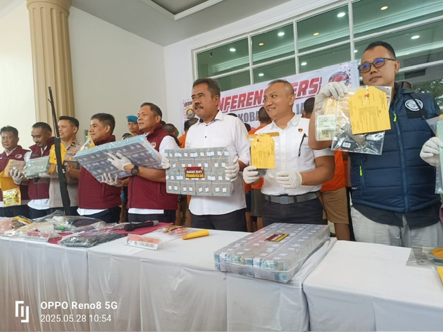 Tajam24Jam.Com Jambi, Rabu 28/5/2025 — Kepolisian Daerah (Polda) Jambi kembali mencatatkan prestasi besar dalam upaya pemberantasan narkoba. Dalam konferensi pers 28 Mei 2025, Kapolda Jambi Irjen Pol Krisno H. Siregar memimpin langsung pemaparan hasil pengungkapan kasus-kasus narkotika terbaru yang melibatkan jaringan lokal hingga internasional, lengkap dengan barang bukti senjata api, kendaraan, aset properti, dan uang tunai senilai miliaran rupiah.