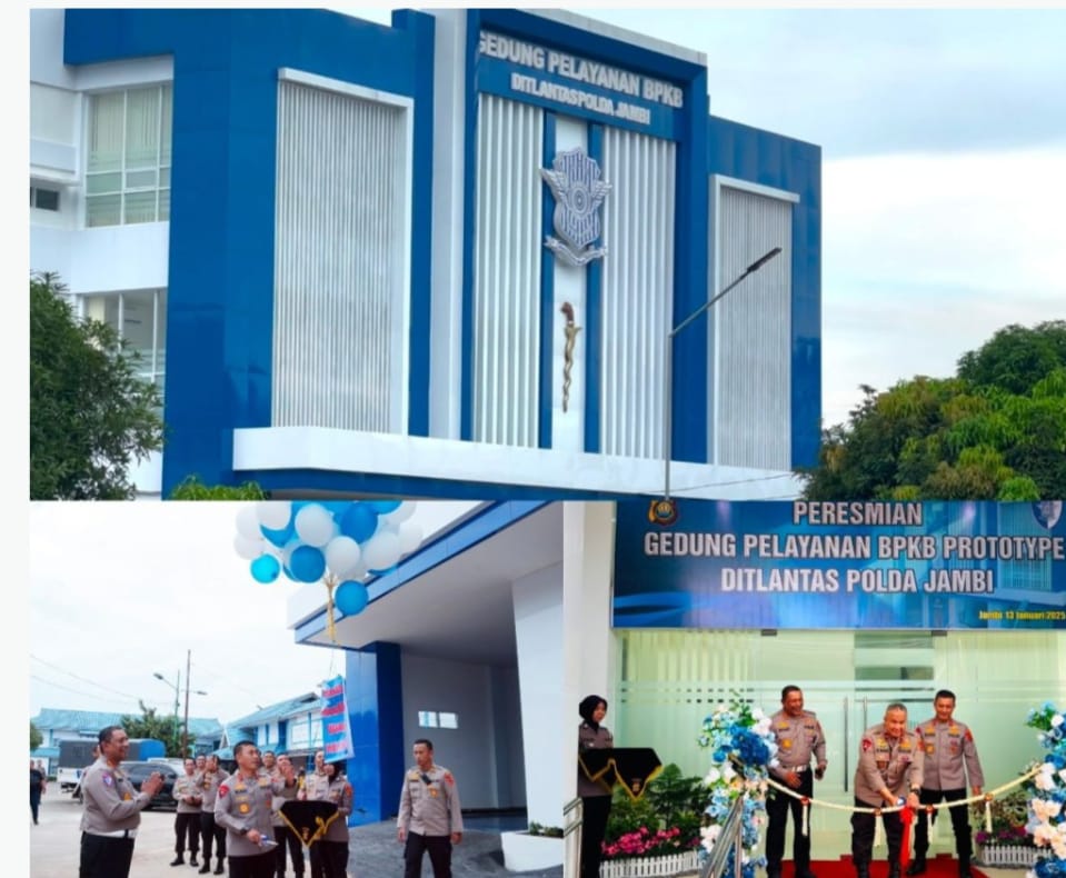 Tajam24jam.com JAMBI, Selasa 14/01/2025 – Kapolda Jambi Irjen Pol Drs Rusdi Hartono didampingi Wakapolda Brigjen Pol Edi Mardianto, Dirlantas Kombes Pol Dhafi, Pejabat Utama meresmikan Gedung Pelayanan BPKB, Senin (13/01/25).