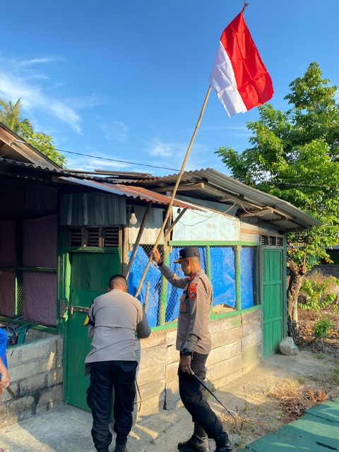 Dalam aksi tersebut, AKBP Pradana Aditya Nugraha didampingi para PJU Polres Bangka Barat serta Bhabinkamtibmas ecara langsung turun ke jalan dan menyerahkan bendera kepada warga