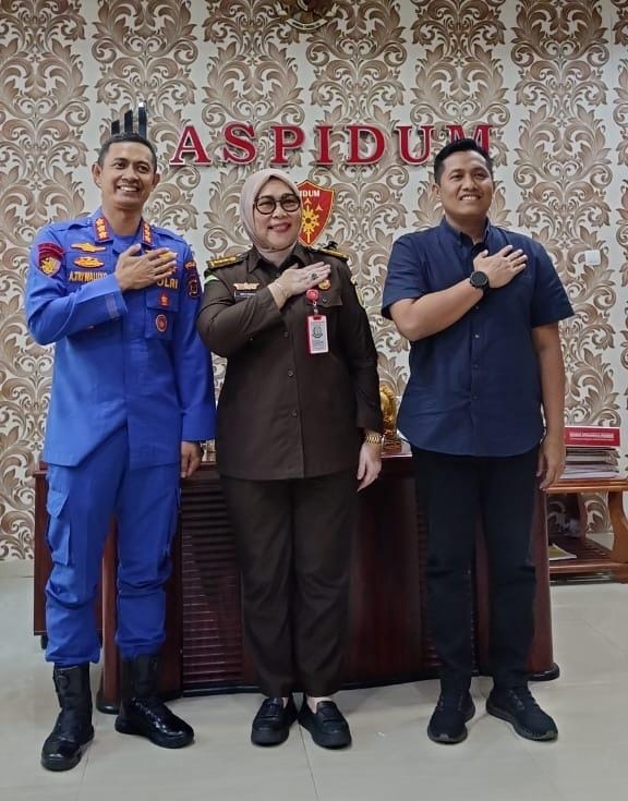 Kedatangan Dirpolairud Polda Jambi Kombes Pol Agus Tri Waluyo yang didampingi Kasubditgakkum Polairud AKBP. Ade Candra di kantor kejaksaan tinggi Jambi disambut oleh Asisten Tindak Pidana Umum (Aspidum) Kejaksaan Tinggi Jambi ibu Mayasari.