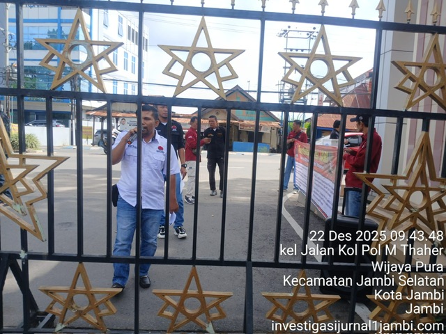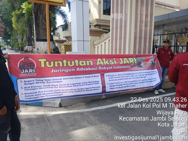 Tajam24Jam.Com Jambi, 22 Desember 2025 – Jaringan Advokasi Rakyat Indonesia (JARI) menggelar aksi unjuk rasa di depan Markas Polda Jambi pada Senin, 22/12/2025. Aksi ini menjadi bentuk protes terbuka terhadap lambannya penanganan dugaan praktik galian C ilegal yang disebut-sebut dimanfaatkan oleh PT Wing, yang hingga kini dinilai belum menunjukkan kejelasan penegakan hukum.