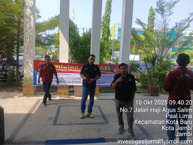 Tajam24Jam.Com Jambi, Senin (29/9/2025) – Jaringan Advokasi Rakyat Indonesia (JARI) menggelar aksi demonstrasi di depan Kantor Dinas Lingkungan Hidup (DLH) Provinsi Jambi. Aksi tersebut menyoroti praktik galian C ilegal di Desa Sungai Abang, Kabupaten Sarolangun, yang dinilai telah merusak lingkungan dan mengabaikan hak rakyat atas ruang hidup yang sehat.