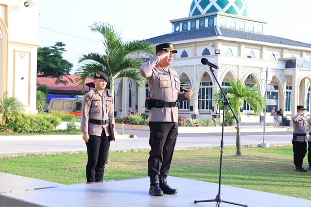 Perwira Upacara AKBP Sopirin,S.H ( Kabag SDM Polresta Jambi ), Komandan Upacara Iptu Galumbang Simaremare,S.Sos. (Ps Kanit Turjawali Sat Samapta Polresta Jambi).