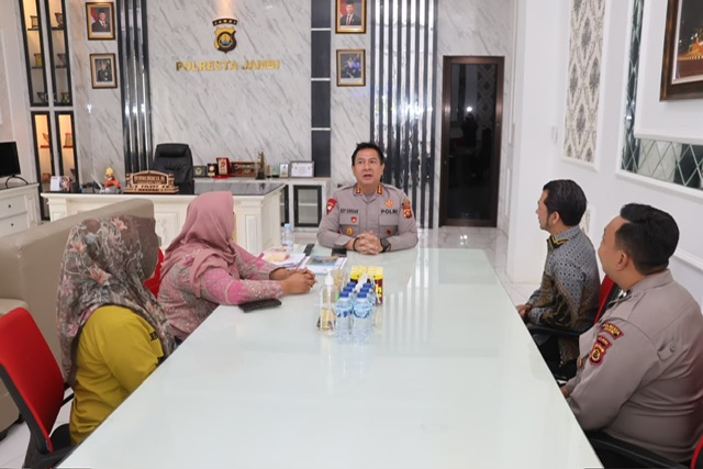Tajam24Jam.Com Jambi, 20 Agustus 2025 – Dalam rangka memperkuat hubungan kelembagaan antara kepolisian dan dunia pendidikan, Kapolresta Jambi Kombes Pol Boy Sutan Binanga Siregar, S.I.K., M.H. menerima kunjungan audiensi dari Rektor Universitas Adiwangsa Jambi beserta jajaran, Rabu (20/08/2025) pukul 09.45 WIB di ruang kerja Kapolresta Jambi.