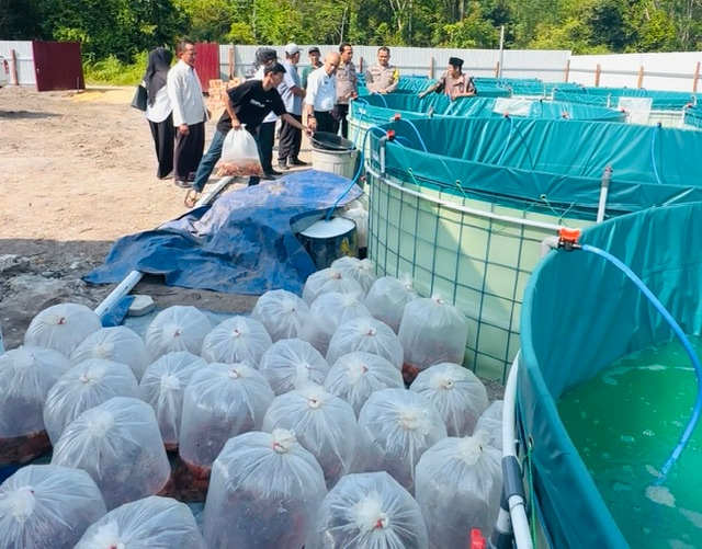 Program inovatif ini diluncurkan perdana di Desa Kasang Lopak Alai dengan penebaran 12.800 benih ikan nila yang ditempatkan pada 16 kolam bioflok.