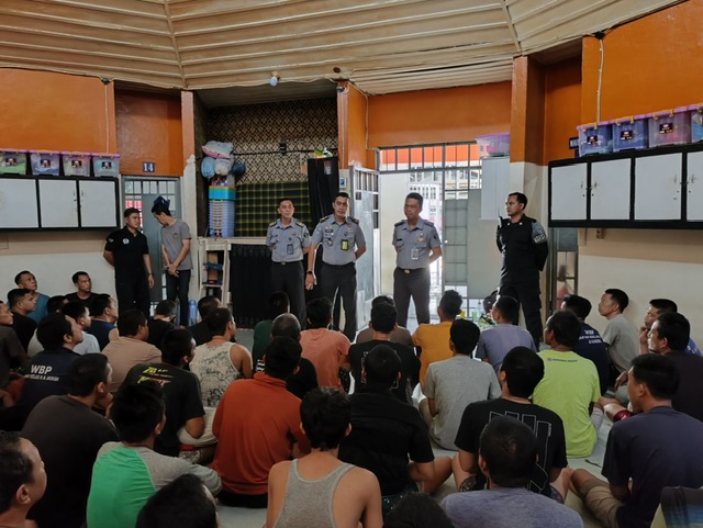 Seluruh Warga Binaan diarahkan keluar kamar, diperiksa badan, dan kemudian berkumpul di lapangan untuk mendengarkan pembinaan langsung.