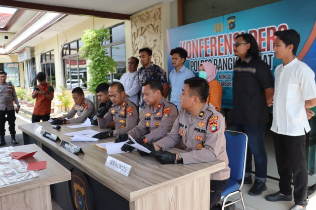 Konferensi pers yang dipimpin langsung oleh Kapolres Bangka Barat, AKBP Pradana Aditya Nugraha, digelar di Mapolres Bangka Barat, Jumat (17/10/2025) sore. Dalam kegiatan itu, polisi menghadirkan satu tersangka perempuan, sementara dua pelaku lainnya masih dalam pengejaran dan telah ditetapkan sebagai DPO.