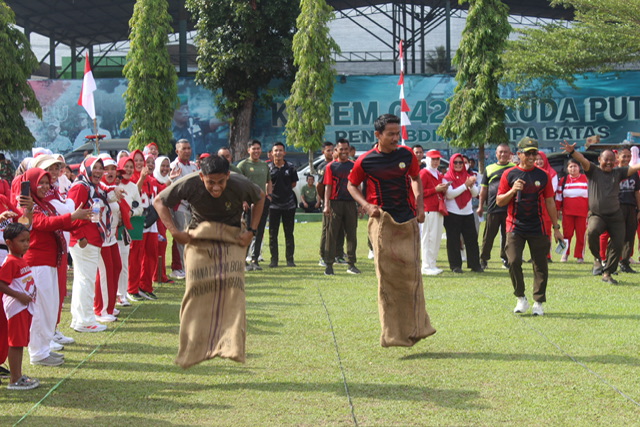 “Mari kita menyambut Hari kemerdekaan ini dengan penuh kegembiraan. Melalui lomba-lomba ini, kita ingin membangun motivasi, semangat dan kekompakan di antara seluruh keluarga besar Korem 042/Gapu,” ujarnya.