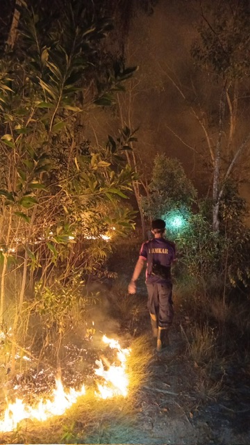 Petugas tiba di lokasi sekitar pukul 19.00 WIB dan langsung melakukan pemadaman untuk mencegah api merambat ke area sekitar.