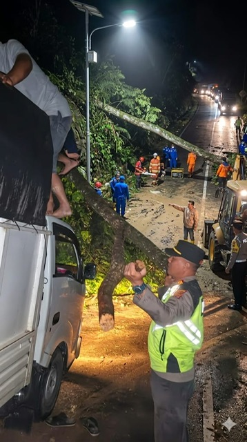 “Setelah dilakukan pengecekan di lapangan, ditemukan empat titik longsor. Dua titik menutup sebagian badan jalan dan masih bisa dilalui kendaraan roda dua dan roda empat, sementara dua titik lainnya disertai pohon tumbang yang juga menghambat akses,” ujar Kasi Humas Polres Kerinci.