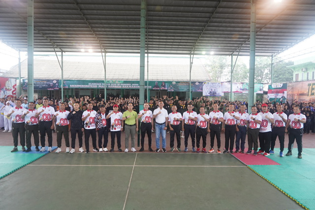 Tajam24Jam.Com Jambi, 9 Agustus 2025 – Ratusan warga, atlet dan anggota TNI tumpah ruah di Makorem 042/Gapu menyambut pembukaan Open Turnamen Piala Danrem 042/Gapu Brigjen TNI Heri Purwanto, S.E., M.Sc, Sabtu 9/8/2025. Ajang ini menjadi magnet perayaan HUT Kemerdekaan RI ke-80, memadukan semangat sportivitas dan kebersamaan cinta tanah air.