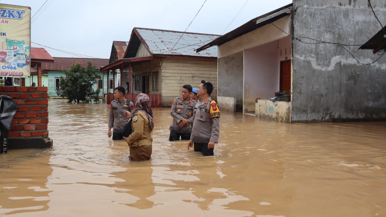 Tajam24Jam.Com JAMBI, 25/02/2025 – Untuk memastikan situasi Kamtibmas serta keadaan warga di wilayah hukumnya, Kapolresta Jambi Kombes Pol. Boy Sutan Binanga Siregar, S.I.K.,M.H, didampingi Kasi Propam Polresta Jambi AKP Budi Suwarto, S.H, dan Kapolsek Kotabaru AKP Jimi Fernando, S.I.K, berikut personil Bhabinkamtibmas serta Lurah Sukakarya turun langsung menyusuri genangan air dan basah-basahan untuk mengecek beberapa titik lokasi terdampak banjir akibat tingginya curah hujan beberapa hari terakhir di wilayah Kenali Asam Bawah, Kecamatan Kotabaru Kota Jambi, Selasa (25/02/2025).