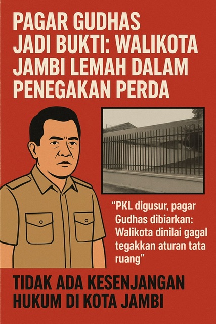 Bagi publik, kasus Gudhas kini bukan lagi sekadar persoalan pagar. Lebih jauh, ia menjadi simbol lemahnya keberanian politik Walikota Jambi dalam menegakkan perda dan perwal secara konsisten.