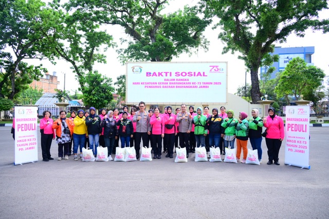 Tajam24Jam.Com Jambi, 12 September 2025 – Dalam rangka memperingati Hari Kesatuan Gerak Bhayangkari (HKGB) ke-73 Tahun 2025, Polda Jambi bersama Bhayangkari Daerah Jambi menggelar kegiatan bakti sosial (baksos) bersama para pengemudi ojek online (ojol) dan ojek pangkalan, Jumat (12/9/2025).