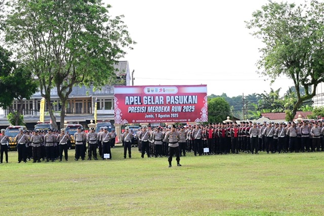Presisi Merdeka Run 2025 ini yang pertama di Jambi. Saya minta seluruh personel menjaga kesehatan dan melaksanakan tugas dengan penuh tanggung jawab,” ujar Kapolda.