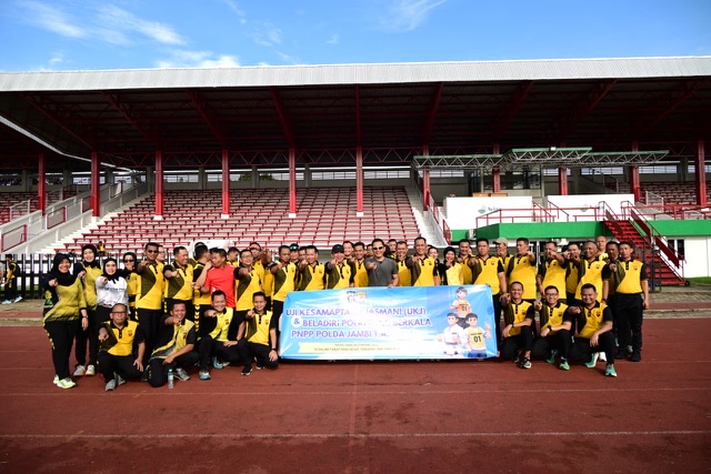 Kegiatan yang dilaksanakan di Lapangan Tri Lomba Juang KONI Kota Jambi dan diikuti langsung oleh Kapolda Jambi Irjen Pol. Krisno H. Siregar, didampingi Wakapolda Jambi Brigjen Pol B. Ali, Irwasda Polda Jambi Kombes Pol Jannus P. Siregar, serta para pejabat utama, Wadir, Kabag, Kasubdit, dan Pamen di lingkungan Polda Jambi.