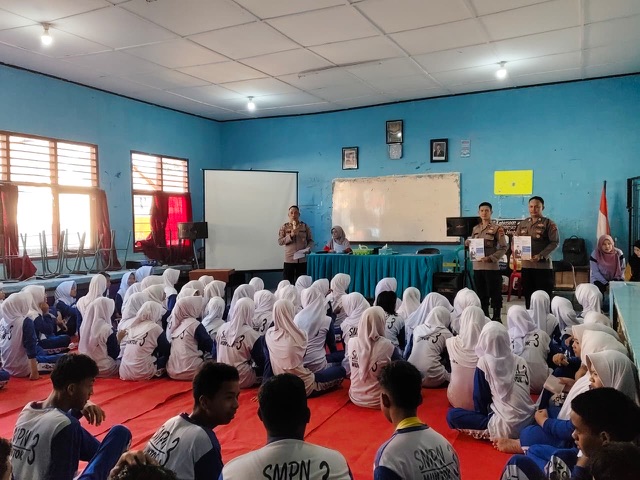 personel Bag SDM yang dipimpin langsung oleh Kabag SDM Polres Bangka Barat AKP Amri, S.H., M.Si melaksanakan kegiatan sosialisasi penerimaan SMA Kemala Taruna Bhayangkara Tahun Ajaran 2026/2027 di beberapa SMP wilayah hukum Polsek Muntok.