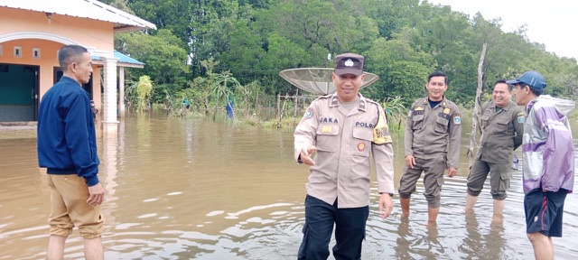 Tanggul Dsn. Pala, Desa Teluk Limau: Jebol hingga air masuk ke rumah warga. Polisi mengevakuasi warga agar aman dari potensi bahaya.
