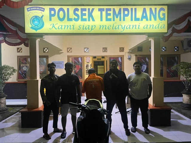 Menindaklanjuti laporan tersebut, Unit Reskrim Polsek Tempilang Polres Bangka Barat langsung bergerak cepat melakukan penyelidikan di sekitar lokasi kejadian. Sekitar pukul 13.00 WIB, petugas mendapat informasi adanya seorang laki-laki tak dikenal yang sedang mendorong sepeda motor dengan ciri-ciri serupa menuju arah belakang bangunan milik warga bernama Subardi alias Bude di Simpang Pantai Selepuk.