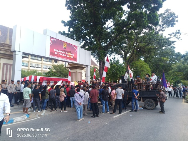 Tajam24Jam.Com Jambi, 30 Juni 2025 – Ratusan warga dari Desa Puding, Kecamatan Kumpeh, Kabupaten Muaro Jambi, menggelar aksi massa di depan Polda Jambi. Mereka mendesak penegakan hukum atas dugaan praktik mafia tanah yang menyeret nama Kepala Desa Pulau Mentaro, yang dituding menerbitkan sertifikat tanah secara ilegal di atas lahan yang telah lama dikuasai masyarakat Desa Puding.