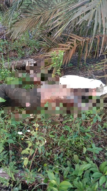 Dari hasil pemeriksaan luar oleh tenaga kesehatan, diketahui terdapat dua luka bekas gigitan ular pada bagian bawah mata kaki kanan korban. Korban ditemukan dalam posisi telentang di bawah pohon sawit, dengan kondisi jenazah sudah mulai membusuk dan bagian kepala belakang berada di atas tunggul kayu.