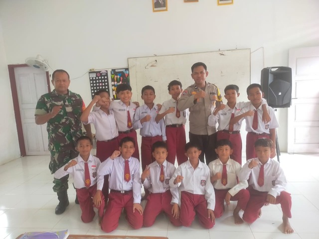 Bhabinkamtibmas bersama Babinsa dan perangkat Desa Penyengat Olak melaksanakan kegiatan sosialisasi dan himbauan tentang Bullying/perundungan dan pemalakan kakak kelas ke adek kelas.