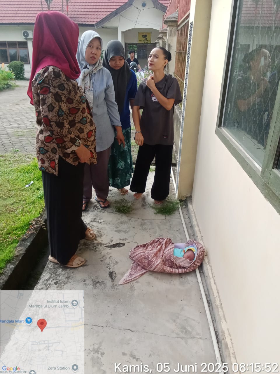Kapolsek Jambi Selatan, AKP Helrawati Siregar, SH, menyampaikan bahwa bayi ditemukan warga di sekitar lingkungan Yayasan Mulia, Talang Bakung, Kota Jambi, pada Kamis (5/6) pukul 08.30 WIB.