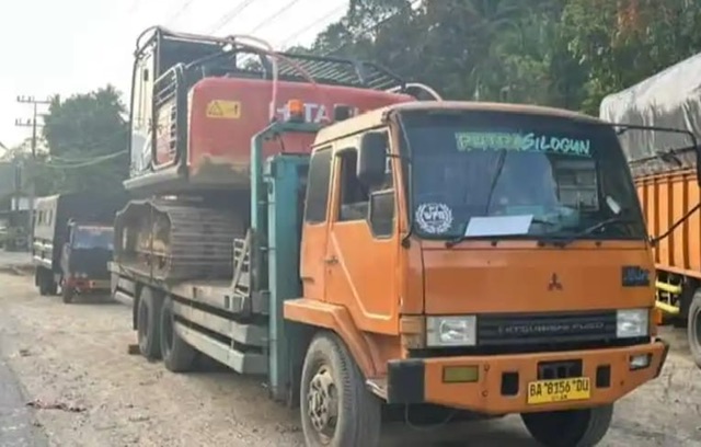 Adapun 2 alat berat ini diduga akan dibawa masuk ke 2 titik tambang ilegal yang ada di