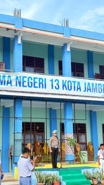 Kegiatan yang dimulai pukul 07.00 WIB tersebut dipimpin langsung oleh Kasat Lantas Polresta Jambi AKP Hadi Siswanto bersama personelnya. Dalam kesempatan itu, AKP Hadi Siswanto bertindak sebagai inspektur upacara sekaligus memberikan pembinaan kepada para siswa, guru, dan tenaga pendidik SMA Negeri 13 Kota Jambi.