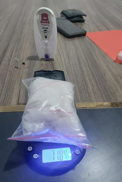 Dalam penangkapan tersebut, petugas berhasil menemukan empat belas bungkus plastik berisi kristal bening diduga narkotika jenis sabu dengan berat total sekitar 71,84 gram. Barang haram tersebut disembunyikan di dalam celana jeans salah satu pelaku.