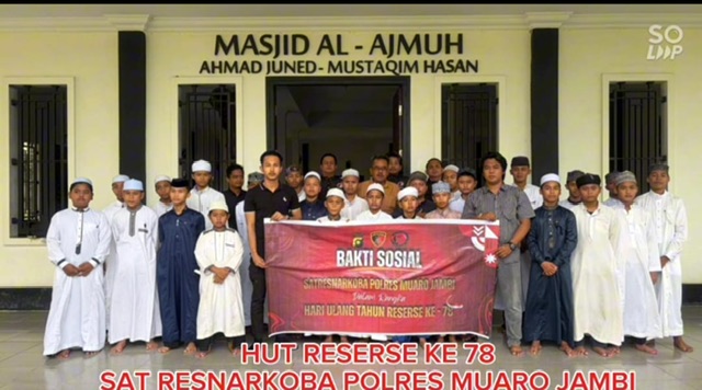 Tajam24Jam.Com Muaro Jambi, 9 Desember 2025 – Dalam rangka memperingati Hari Ulang Tahun Reserse Polri, Satuan Reserse Narkoba Polres Muaro Jambi melaksanakan kegiatan bakti sosial di Pondok Pesantren HSQ, Kecamatan Sekernan, Selasa (09/12/2025) pukul 16.00 WIB.