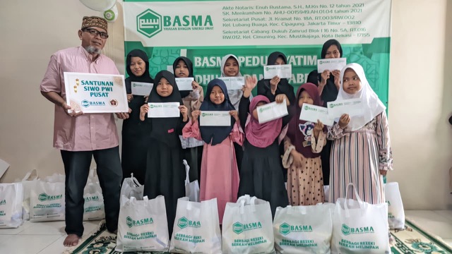 Serah terima dana santunan pun dilakukan SIWO PWI Pusat kepada Akmal Pribadi selaku wakil Yayasan BASMA yang berada di bilangan Lubang Buaya, Jakarta Timur.