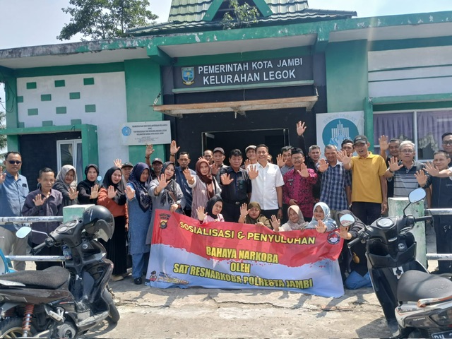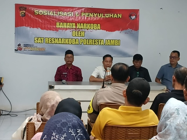 Tajam24Jam.Com Jambi, Kamis 5/6/2025 – Polresta Jambi melalui Kasat Narkoba AKP Simsal Siahaan, S.A.P., M.H, melaksanakan kegiatan sosialisasi tentang narkoba di Kelurahan Legok Kecamatan Danau Sipin Kota Jambi pada hari Kamis, 5 Juni 2025. Kegiatan ini bertujuan untuk meningkatkan kesadaran dan pengetahuan masyarakat tentang bahaya narkoba dan penanganannya.