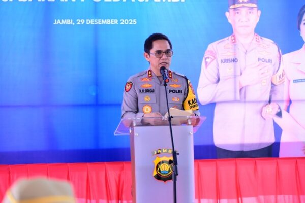 Tajam24Jam.Com Jambi, 29 Desember 2025 – Kepolisian Daerah (Polda) Jambi melaksanakan kegiatan Ground Breaking Satuan Pelayanan Pemenuhan Gizi (SPPG) secara serentak dan daring yang terpusat di SPPG Polsek Telanaipura, Polresta Jambi, Senin (29/12/2025). Kegiatan ini merupakan bentuk dukungan nyata Polri terhadap Program Makan Bergizi Gratis (MBG) sebagai implementasi Asta Cita Presiden Republik Indonesia dalam upaya meningkatkan kualitas gizi masyarakat, khususnya ibu hamil, ibu menyusui, dan peserta didik. Ground breaking secara nasional dipimpin langsung oleh Wakapolri Komjen Pol. Prof. Dedi Prasetyo dan diikuti oleh jajaran Polda Jambi bersama unsur Forkopimda, pemerintah daerah, serta para pemangku kepentingan terkait. Seluruh Polres dan Polresta jajaran Polda Jambi turut mengikuti kegiatan melalui zoom meeting. Hadir dalam kegiatan tersebut Gubernur Jambi H. Al Haris, Kapolda Jambi Irjen Pol. Krisno H. Siregar, Wakapolda Jambi Brigjen Pol. M. Mustaqim, Irwasda Polda Jambi Kombes Pol. Janus P. Siregar, Wakapolresta Jambi, Wali Kota Jambi, unsur TNI, Ketua Bhayangkari Daerah Jambi, serta tamu undangan lainnya. Dalam paparannya, Ketua Gugus Tugas MBG Polda Jambi Kombes Pol. Janus P. Siregar menyampaikan bahwa Polda Jambi dan jajaran akan melaksanakan ground breaking sebanyak 11 SPPG dengan total penerima manfaat mencapai 24.420 siswa. “Saat ini Polda Jambi melalui Yayasan Kemala Bhayangkari telah mengelola 9 SPPG yang sudah beroperasional, serta 2 SPPG lainnya dalam tahap persiapan operasional,” ujarnya. Lebih lanjut dijelaskan, secara keseluruhan Polda Jambi dan jajaran akan memiliki 26 SPPG dengan total penerima manfaat sebanyak 71.704 orang yang terdiri dari 337 sekolah dan 26 posyandu. Seluruh SPPG tersebut ditargetkan mulai beroperasi secara penuh pada awal Februari 2026. Sementara itu, Kapolda Jambi Irjen Pol. Krisno H. Siregar dalam sambutannya menegaskan bahwa Program Makan Bergizi Gratis merupakan langkah strategis dalam mendukung peningkatan kualitas sumber daya manusia di Provinsi Jambi. “Melalui pembangunan SPPG yang dikelola oleh Polda Jambi melalui Yayasan Kemala Bhayangkari, kita turut mewujudkan Program Asta Cita Presiden Republik Indonesia. Saya berharap SPPG yang hari ini dilaksanakan ground breaking dapat menjadi contoh bagi SPPG Polres dan Polresta jajaran Polda Jambi,” tegas Kapolda. Rangkaian kegiatan ditutup dengan peletakan batu pertama pembangunan SPPG Telanaipura Polresta Jambi serta sesi foto bersama. Penulis Tim