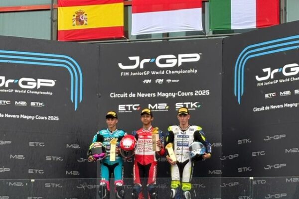 Tajam24Jam.Com Jakarta, Minggu 6/7/2025 – Pebalap binaan PT Astra Honda Motor (AHM) kembali cetak sejarah untuk Indonesia. Setelah sebelumnya Veda Ega Pratama menang di RedBull Rookies Cup (RBRC) Italia, saat ini giliran M. Kiandra Ramadhipa yang tampil memukau dalam gelaran FIM JuniorGP World Championship yang berlangsung di sirkuit Magny-Cours, Prancis pada 5-6 Juli 2025. M. Kiandra Ramadhipa berhasil melaju kencang dan mencetak sejarah dengan meraih podium tertinggi dalam race pertama balap European Talent Cup (ETC). Raihan Ramadhipa sekaligus menjadi prestasi pertama pebalap Indonesia di balapan bergengsi benua Eropa ini. Pada balapan pertama ETC yang berlangsung Minggu, 6 Juli 2025 Ramadhipa yang turun bersama Honda Asia Dream Racing Junior Team tampil luar biasa. Kondisi track yang hujan, membuat jadwal start ditunda sebanyak dua kali. Lintasan basah menjadi tantangan untuk Ramadhipa yang baru pertama kali turun di lintasan arena balap ini. Balapan pun dikurangi menjadi sembilan lap atas penundaan jadwal start. Pemuda asal Sleman, Yogyakarta ini mampu melakukan start dengan baik dari posisi 2. Persaingan di grup depan sangat rapat dengan diisi pebalap yang cukup banyak. Beberapa pebalap melakukan slipstream terhadap Ramadhipa dalam beberapa kesempatan, hingga membuatnya sempat tergeser ke posisi ke-8. Namun, dia bisa bangkit dan berada di posisi empat besar pada lap kedua terakhir. Memulai lap terakhir dengan berada di posisi kedua, Ramadhipa turun ke posisi ketiga di sektor pertama. Tetapi, dia berhasil melewati dua pebalap di depan, lalu memimpin balapan dan bertahan hingga akhir. Lagu Indonesia Raya pun berkumandang di Magny Cours dan menjadi capaian bersejarah pertama kali dari pebalap Indonesia di sirkuit ini. Balapan kedua juga masih berlangsung di lintasan basah. Ramadhipa melakukan start dengan bagus dan bertahan di posisi kedua. Namun, dia dilewati dua pebalap dan berada di posisi keempat grup terdepan. Ramadhipa mencoba bertahan dengan tiga pebalap di depan, tetapi tidak mudah, sehingga ia tertinggal. Bersaing sendiri di posisi keempat, Ramadhipa semakin terpisah dari tiga pebalap di depan sekaligus para pebalap di belakangnya, ditambah hujan yang mempengaruhi lintasan. Dia hampir melakukan kesalahan di lap ketujuh yang membuatnya bergoyang hebat di atas motor, tetapi ia bisa melakukan penyelamatan dan bertahan. Tak berselang lama, pebalap di urutan kelima mengalami high side, dan akhirnya balapan dihentikan setelah bendera merah keluar. Ramadhipa finish di posisi empat dan meraih 13 poin penting dengan total 73 poin. Kini ia berada di peringkat keempat klasemen. “Kondisi hari ini sulit, tetapi sangat berbeda antara kedua balapan. Saya bisa bertahan di grup depan hingga lap-lap akhir. Akhirnya, saya berusaha memimpin balapan dan berhasil. Saya sangat senang dengan kemenangan pertama kami di ajang ini. Saya ingin mendedikasikan kemenangan ini untuk Borja Gomez (mantan pebalap Moto2 yang meninggal di Magny Cours) dan seluruh warga Indonesia. Pada race kedua, kondisinya lebih buruk dan target saya adalah bisa finish. Saya mengendalikan diri dan mencoba untuk tidak buru-buru, hingga bisa mengamankan 13 poin penting untuk klasemen. Saya hampir terjatuh, tetapi yang terpenting adalah hasil akhir. Saya sangat senang dengan apa yang kami capai di Magny-Cours,” ujar Ramadhipa Poin Perdana Balapan JuniorGP berlangsung di lintasan basah karena hujan yang belum pernah dihadapi Veda sebelumnya. Jumlah lap pun dikurangi menjadi 10, saat lap pertama berjalan, tiga pebalap sudah terjatuh. Veda yang memulai jalannya balapan dari posisi ke-12 melakukan start dengan aman. Pebalap Astra Honda Racing Team tersebut berada di belakang rekan satu timnya Zen Mitani, dengan konsisten. Memasuki lap ke-8, bendera merah berkibar setelah ada pebalap terjatuh di tikungan 13. Balapan akhirnya dihentikan lebih awal. Atas hasil finis di posisi ke-12, Veda berhak meraih empat poin dan saat ini berada di posisi ke-19 klasemen sementara. “Balapan hari ini sulit karena kondisi basah yang membuat lintasan jadi sangat licin. Saya mencatat peningkatan lap demi lap dan saya sudah melakukan yang terbaik. Inilah hasil yang kami dapatkan di Magny-Cours, tetapi paling tidak kami meraih poin perdana musim ini di JuniorGP. Kami akan berjuang lagi di MotorLand agar bisa meraih hasil lebih baik sebelum jeda musim panas,” ujar Veda. General manager Marketing Planning and Analysis AHM, Andy Wijaya mengatakan capaian bersejarah dan poin penting yang diraih oleh pebalap binaan Honda merupakan wujud kerja keras serta kemampuan adaptasi yang mereka miliki. “Meskipun baru pertama kali balapan di Prancis, kedua pebalap binaan kami mampu beradaptasi cepat, kompetitif, bahkan mencetak prestasi yang membanggakan bagi Indonesia. Semoga semangat Satu Hati yang mereka tunjukan bisa menginspirasi generasi muda dalam memperjuangkan mimpinya,” ujar Andy. Putaran FIM JuniorGP berikutnya akan berlangsung pada 24-27 Juli 2025 di MotorLand Aragon, sirkuit yang sudah dikenal oleh kedua pebalap tersebut. Namun, sebelum berangkat ke Spanyol, Veda dan juga Ramadhipa akan turun pada putaran kelima Red Bull Rookies Cup di Sirkuit Sachsenring, Jerman, 12-13 Juli mendatang. Penulis Tim