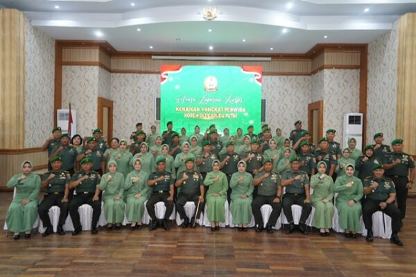 Tajam24Jam.Com JAMBI, 7 April 2026 – Komandan Korem 042/Gapu Brigjen TNI Nyamin, S.I.P., M.M. memimpin langsung Laporan Korp Kenaikan Pangkat Perwira jajaran Korem 042/Gapu periode 1 April 2026 di Aula Balai Prajurit Makorem 042/Gapu, Selasa 7/4/2026. Sebanyak 17 perwira menerima kenaikan pangkat dalam periode ini, terdiri dari 1 perwira dari Mayor ke Letnan Kolonel, 4 perwira dari Kapten ke Mayor, 10 perwira dari Letnan Satu ke Kapten serta 2 perwira dari Letnan Dua ke Letnan Satu. Kenaikan pangkat tersebut menjadi indikator pembinaan karier prajurit yang berjalan sekaligus bentuk penghargaan atas dedikasi, loyalitas, dan kinerja yang telah ditunjukkan dalam pelaksanaan tugas. Dalam arahannya, Danrem menegaskan bahwa kenaikan pangkat bukan sekadar formalitas administratif, melainkan amanah yang menuntut peningkatan kualitas kepemimpinan dan profesionalisme. “Kenaikan pangkat adalah kehormatan sekaligus amanah. Setiap perwira dituntut mampu meningkatkan kapasitas diri, karena tantangan tugas ke depan semakin kompleks dan dinamis,” tegasnya. Lebih lanjut, ia menekankan bahwa perwira memiliki peran strategis sebagai penggerak satuan, sehingga harus mampu menjadi teladan, menjaga integritas, serta adaptif terhadap perkembangan situasi di wilayah. Dengan bertambahnya pangkat, lanjutnya, maka tanggung jawab yang diemban juga semakin besar, baik dalam aspek pembinaan satuan maupun pelaksanaan tugas teritorial di wilayah. Pelaksanaan laporan korp berlangsung sederhana dan khidmat, dihadiri para Pejabat Utama Korem 042/Gapu, Dandim 0415/Jambi, para Dan/Ka Satbalak Aju Korem, Ketua Persit KCK Koorcab Rem 042 PD XX/ TIB dan pengurus serta perwira yang menerima kenaikan pangkat didampingi istri. Momentum ini diharapkan tidak hanya menjadi kebanggaan pribadi, tetapi juga mampu meningkatkan soliditas dan kinerja satuan secara keseluruhan dalam mendukung tugas pokok TNI AD. Acara ditutup dengan pemberian ucapan selamat oleh Danrem kepada para perwira, dilanjutkan dengan foto bersama sebagai simbol kebersamaan prajurit Korem 042/Gapu (Penrem 042/Gapu). Penulis Tim