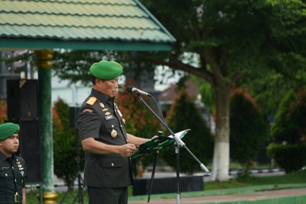 Tajam24Jam.Com Jambi, 15 Desember 2025 — Korem 042/Garuda Putih (Gapu) menggelar Upacara Peringatan Hari Juang TNI Angkatan Darat ke-80 Tahun 2025, selaku Inspektur Upacara (Irup) Danrem 042/Gapu Brigjen TNI Heri Purwanto, S.E., M.Sc di Lapangan Upacara Makorem 042/Gapu, Jalan Urip Sumoharjo, Telanaipura, Kota Jambi, Senin (15/12/2025). Upacara yang berlangsung khidmat ini diikuti para PJU Korem, Dandim 0415/Jambi, para Dansat/Ka Balak Aku Korem, Mahasiswa STIKES Gapu, prajurit dan ASN Korem 042/Gapu di wilayah Kota Jambi. Amanat Kepala Staf Angkatan Darat (Kasad) Jenderal TNI Maruli Simanjuntak, M.Sc dibacakan oleh Danrem menekankan keteladanan Panglima Besar Jenderal Soedirman sebagai simbol integritas, kemurnian jiwa dan semangat juang yang harus terus diaktualisasikan dalam pelaksanaan tugas. Kasad juga mengingatkan agar seluruh prajurit dan ASN TNI AD senantiasa menjaga kehormatan diri, menjunjung tinggi nilai perjuangan, serta konsisten memegang jati diri TNI AD sebagai tentara rakyat, tentara pejuang, dan tentara profesional yang hadir memberikan solusi bagi rakyat. Selain itu, Kasad menyampaikan apresiasi kepada masyarakat, pemerintah daerah, dan seluruh pihak atas dukungan terhadap pelaksanaan tugas TNI Angkatan Darat di seluruh wilayah. Komandan Korem 042/Gapu dalam pernyataan singkatnya menegaskan bahwa peringatan Hari Juang TNI AD ke-80 menjadi landasan moral untuk meningkatkan profesionalisme, soliditas, dan kesiapsiagaan prajurit dalam menghadapi dinamika tantangan tugas ke depan. “Nilai-nilai perjuangan harus terus menjadi pedoman dalam menjaga keamanan wilayah sekaligus memperkuat sinergi dengan pemerintah daerah dan masyarakat,” ujar Danrem. Peringatan Hari Juang TNI AD ke-80 ini akan lebih memperkokoh peran Korem 042/Gapu sebagai kekuatan pertahanan wilayah yang adaptif, responsif, dan berorientasi pada kepentingan rakyat serta keutuhan Negara Kesatuan Republik Indonesia. Penulis Tim