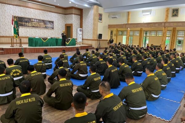 Tajam24Jam.Com JAMBI, 13 Maret 2026 — Kepala Jasmani Kodam (Kajasdam) XX/Tuanku Imam Bonjol Kolonel Inf Prasetyo Ari Wibowo, S.Sos., M.I.Pol. memantau langsung pelaksanaan kenaikan sabuk Pencak Silat Militer (PSM) dari sabuk putih ke sabuk hijau yang diikuti 854 prajurit jajaran Korem 042/Gapu yang dilaksanakan dari tanggal 9-12 Maret 2026. Kegiatan pembinaan kemampuan bela diri tersebut dilaksanakan secara serentak di tiga lokasi, yakni Balai Prajurit Makorem 042/Gapu, Stadion Kabupaten Sarolangun, serta Gor Futsal Kabupaten Tebo. Dalam peninjauan itu, Kajasdam melihat langsung proses pelaksanaan ujian yang meliputi penguasaan teknik dasar pencak silat militer, ketahanan fisik, serta kedisiplinan prajurit dalam setiap tahapan penilaian. Kolonel Inf Prasetyo menegaskan bahwa kemampuan bela diri merupakan salah satu kompetensi dasar yang harus dimiliki setiap prajurit TNI AD sebagai bagian dari pembinaan fisik dan mental. “Kenaikan sabuk ini bukan sekadar peningkatan tingkat kemampuan bela diri, tetapi juga menjadi sarana pembentukan karakter prajurit yang tangguh, disiplin, dan memiliki kepercayaan diri tinggi dalam melaksanakan tugas,” ujarnya. Ia menambahkan bahwa pembinaan kemampuan bela diri harus terus dilakukan secara berkelanjutan guna menjaga kesiapan prajurit dalam menghadapi berbagai tantangan tugas di lapangan.Pelaksanaan uji kenaikan sabuk tersebut juga mendapat sambutan antusias dari para prajurit. Sejak pagi hari, ratusan prajurit tampak bersemangat mengikuti setiap tahapan ujian dengan penuh disiplin dan kesungguhan. Antusiasme tersebut terlihat dari keseriusan para peserta saat memperagakan teknik dasar, rangkaian gerakan, hingga simulasi pertahanan diri dalam pencak silat militer yang menjadi bagian dari materi penilaian. Kegiatan ini menjadi bagian dari program pembinaan jasmani TNI AD untuk membentuk prajurit yang tidak hanya memiliki fisik prima, tetapi juga kemampuan bela diri yang mumpuni dalam mendukung pelaksanaan tugas satuan. (Penrem 042/Gapu) Penulis Tim