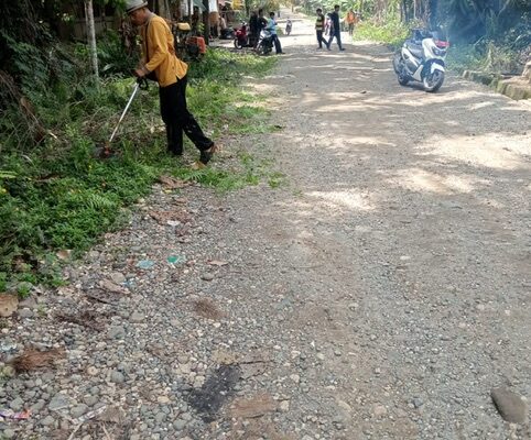 Karang Taruna Desa Pulau Baru Gotong Royong Bersihkan Bahu Jalan Sambut Ramadan