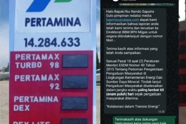 Tajam24Jam.Com Pelalawan, 16 Desember 2025 – BPH Migas telah menanggapi laporan basminusantara.com terkait dugaan pelanggaran SPBU No. 14.284.633 di Pangkalan Kerinci, Pelalawan, Riau. Dalam tanggapannya, BPH Migas menyatakan bahwa laporan tersebut telah diterima dan diteruskan ke Direktorat BBM BPH Migas untuk segera ditindaklanjuti. “Terima kasih atas informasi yang telah Anda sampaikan. Sesuai Pasal 18 ayat (2) Peraturan Menteri ESDM Nomor 40 Tahun 2015 Tentang Pedoman Pengelolaan Pengaduan Masyarakat di Lingkungan Kementerian Energi Dan Sumber Daya Mineral, tindak lanjut pengaduan masyarakat diselesaikan dalam jangka waktu paling lambat 60 (enam puluh) hari sejak pengaduan masyarakat diterima,” tulis BPH Migas dalam tanggapannya. BPH Migas juga memberikan nomor tiket untuk memantau perkembangan kasus ini. Kami akan terus memantau dan memberikan update terbaru terkait kasus ini. Keterangan:SPBU No. 14.284.633 di Pangkalan Kerinci, Pelalawan, RiauLaporan diterima oleh BPH MigasTindak lanjut pengaduan masyarakat diselesaikan dalam 60 hari Penulis Tim