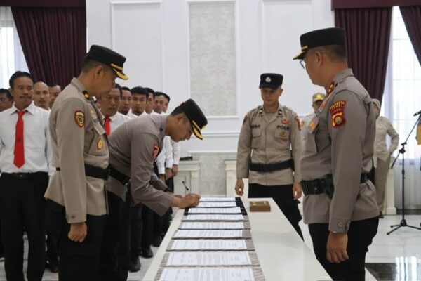 Tajam24Jam.Com Jambi, 3 November 2025 – Dalam rangka memperkuat pengawasan melekat terhadap personel serta komitmen menolak segala bentuk penyimpangan, Polresta Jambi menggelar apel penandatanganan Bersama terhadap Pengawasan Melekat Ankum dan Penolakan Judi Online serta Penyalahgunaan Narkoba bagi seluruh PNPP (Pegawai Negeri pada Polri) di lingkungan Polresta Jambi. Senin, (03/11/2025) Apel digelar secara serentak se-Polda Jambi dan dipimpin langsung oleh Kapolda Jambi Irjen Pol Krisno H. Siregar, S.I.K., M.H, semantara itu Polresta Jambi melaksanakan di gedung Aula Lokamanginti melalui sambungan Zoom Meeting. Wakapolresta Jambi AKBP Nurhadiansyah, S.I.K., M.H. yang memimpin langsung apel di gadung Aula Lokamanginti Polresta Jambi menyampaikan bahwa kegiatan ini merupakan bagian dari upaya institusional dalam menegaskan kembali komitmen moral dan disiplin anggota, khususnya terhadap maraknya praktik judi online dan penyalahgunaan narkoba. “Polresta Jambi berkomitmen penuh untuk bersih dari praktik judi online dan narkoba, kami tegaskan bahwa tidak ada toleransi terhadap personel yang terlibat”. Kegiatan ini adalah bentuk kesungguhan institusi dalam menjaga marwah dan kepercayaan publik, “ujar AKBP Nurhadiansyah”. Hadir dalam kegiatan tersebut antara lain para pejabat utama Polresta Jambi, para Kapolsek jajaran, serta seluruh peserta apel. Setelah penyampaian arahan dari Kapolda Jambi Irjen Pol Krisno H. Siregar, S.I.K., M.H. melalui sambungan Zoom Meeting, dilakukan penandatanganan komitmen bersama sebagai bentuk deklarasi nyata. Kegiatan ini sekaligus mempertegas bahwa Polresta Jambi siap menjaga integritas dan profesionalisme dalam melayani masyarakat. Penulis Tim