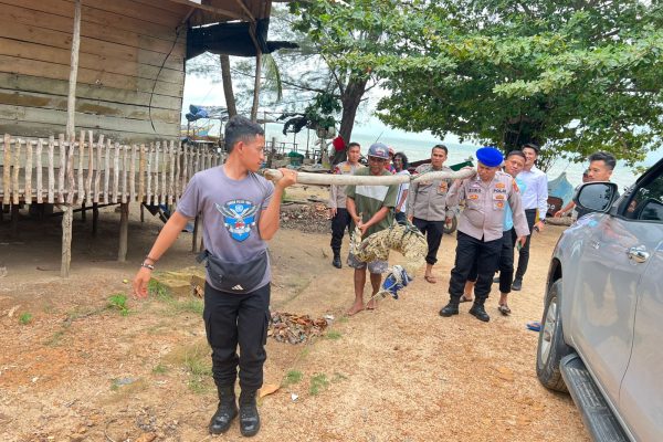 Tajam24jam.com Bangka, Selasa 14/01/2025 – Tim Gabungan Satuan Polisi Perairan dan Udara (Satpolairud) Polres Bangka Barat bersama masyarakat nelayan berhasil menangkap seekor buaya di perairan Tembelok yang kerap muncul ke permukaan dan meresahkan warga sekitar. Penangkapan dilakukan sekitar pukul 11.00 WIB dan berlangsung hingga selesai dengan koordinasi yang baik antara tim Satpolair dan nelayan setempat. Senin, 13 Januari 2025, Kasat Polair Polres Bangka Barat Iptu Yudi Lasmono yang memimpin kegiatan tersebut langsung berkoordinasi dengan pihak Balai Konservasi Sumber Daya Alam (BKSDA) untuk proses penanganan lebih lanjut. Rencananya, buaya tersebut akan dipindahkan ke tempat konservasi di Desa Sempan, Kecamatan Merawang, Kabupaten Bangka. Kapolres Bangka Barat, AKBP Ade Zamrah, S.I.K., melalui Kasubsi PIDM Polres Bangka Barat, Ipda Ardianis, mengapresiasi sinergi yang terjalin antara anggota Satpolair dengan masyarakat. “Keberhasilan penangkapan ini tidak terlepas dari kerja sama yang baik antara anggota kami dan masyarakat nelayan. Ini adalah bentuk nyata kepedulian bersama terhadap keamanan perairan dan lingkungan sekitar,” ujar Ipda Ardianis. Buaya tersebut saat ini dalam kondisi aman dan tidak membahayakan warga. Penangkapan ini diharapkan dapat memberikan rasa tenang kepada masyarakat pesisir yang sempat khawatir dengan keberadaan buaya tersebut. Polres Bangka Barat terus mengimbau masyarakat untuk segera melaporkan jika menemukan satwa liar yang berpotensi mengganggu keamanan atau keselamatan warga agar dapat ditangani sesuai prosedur. Penulis Team.