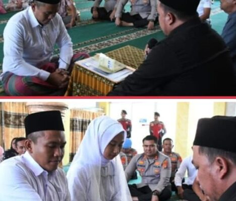 Tajam24Jam.Com Aceh, 10 September 2025 –Polres Aceh Timur, Polda Aceh memfasilitasi salah satu tahanan Satresnarkoba berinisial AG (29) warga Kecamatan Peunaron, Kabupaten Aceh Timur untuk melangsungkan akad nikah, Rabu, (10/09/2025). AG yang diamankan pada tanggal 12/08/2025 lalu karena keterlibatan tindak pidana penyalahgunaan narkotika jenis sabu menikah dengan SA (26) warga Kecamatan Peunaron, Kabupaten Aceh Timur. Keduanya dinikahkan oleh Plh. Kepala KUA Kecamatan Peudawa, Mukhsin, S.TH.I yang disaksikan perwakilan mempelai pria dan wanita dengan pengawalan dari personel Polres Aceh Timur. Meskipun digelar sederhana, akad nikah yang berlangsung di Mesjid Babuttaqwa Polres Aceh Timur ini berjalan khidmat. AG mengucap ijab kabul dengan mahar 200 ribu rupiah. Namun usai akad nikah, AG terlihat tidak kuasa menahan air matanya. Ia memeluk keluarganya yang datang menyaksikan momen sakral ini dan usai ijab kabul, AG kembali dibawa ke ruang tahanan Polres Aceh Timur. Kapolres Aceh Timur AKBP Irwan Kurniadi, S.I.K. usai menyaksikan pernikahan AG dan SA mengatakan, mereka menikah berdasarkan kesepakatan keluarga. “Sudah lama menjalin hubungan dan keluarga telah mengajukan permohonan kepada kami untuk dilaksanakan pernikahan di Polres Aceh Timur,” kata Kapolres. Disebutkan, Polres Aceh Timur memfasilitasi pernikahan salah satu tahanan kasus narkoba ini merupakan wujud pelayanan Polres Aceh Timur kepada tahanan. “Atas dasar kemanusiaan serta persamaan untuk mendapatkan hak, namun dengan mengedepankan prosedur yang berlaku kita bantu dan fasilitasi. Meski berstatus sebagai tahanan, hak-hak mendasar tetap kita berikan. Meski serba terbatas, pernikahan ini hendaknya bisa menjadi momen penting bagi AG dalam mengarungi kehidupan yang baru, semoga menjadi keluarga yang sakinah mawadah wa rahmah.” Ungkap Kapolres Aceh Timur AKBP Irwan Kurniadi, S.I.K. Sementara itu keluarga kedua mempelai mengucapkan terima kasih kepada Polres Aceh Timur atas kesempatan dan fasilitas yang diberikan sehingga pernikahan AG dan SA berjalan lancar. Divisi Humas PolriBidhumas Polda Aceh. (Basri. A)