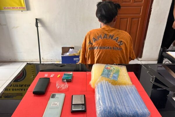 Tajam24Jam.Com Bangka Barat, 12 November 2025 – Komitmen Polres Bangka Barat dalam memberantas peredaran narkoba terus dibuktikan. Melalui tim khusus “Hantu” Satresnarkoba, jajaran berhasil mengamankan dua orang remaja yang diduga terlibat dalam peredaran narkotika jenis sabu di wilayah Kecamatan Mentok. Penangkapan terjadi pada Rabu (12/11/2025) sekira pukul 21.00 WIB, bertempat di Gang Damai, Kelurahan Sungai Baru, Kecamatan Mentok, Kabupaten Bangka Barat. Kedua pelaku masing-masing berinisial R (15) dan H (26) diamankan setelah menunjukkan gerak-gerik mencurigakan. Saat dilakukan penggeledahan, ditemukan 2 paket besar dan 28 paket kecil narkotika jenis sabu, dengan berat bruto mencapai 20,22 gram. Selain itu, petugas juga menyita sejumlah barang bukti lain, di antaranya dua timbangan digital, satu unit sepeda motor, satu ponsel, plastik klip, jaket, serta perlengkapan pengemasan sabu yang diduga digunakan dalam aktivitas peredaran barang haram tersebut. Seizin Kapolres Bangka Barat AKBP Pradana Aditya Nugraha, S.H., S.I.K., PS. Kasi Humas Polres Bangka Barat, Iptu Yos Sudarso membenarkan penangkapan tersebut. Ia menegaskan bahwa Polres Bangka Barat berkomitmen penuh dalam menjaga generasi muda dari bahaya narkoba, termasuk memastikan penanganan kasus yang melibatkan anak dilakukan sesuai aturan hukum yang berlaku. “Benar, tim Satresnarkoba Polres Bangka Barat telah mengamankan dua orang terduga pelaku peredaran narkotika, salah satunya masih di bawah umur. Dalam proses hukum, kami tetap berpedoman pada Undang-Undang Perlindungan Anak,” jelas Iptu Yos Sudarso. “Polres Bangka Barat berkomitmen untuk terus memberantas peredaran narkoba demi mewujudkan lingkungan yang aman dan bersih dari penyalahgunaan narkotika. Kami juga mengajak masyarakat, terutama orang tua, untuk lebih peduli dan mengawasi pergaulan anak-anaknya,” tambahnya. Kedua pelaku beserta seluruh barang bukti kini telah diamankan di Mapolres Bangka Barat untuk proses penyelidikan dan penyidikan lebih lanjut oleh Satresnarkoba. Dengan pengungkapan ini, Polres Bangka Barat menegaskan kembali keseriusannya dalam melindungi generasi muda dari pengaruh negatif narkoba serta mewujudkan Bangka Barat Bersih Narkoba (Bersinar). Penulis Tim